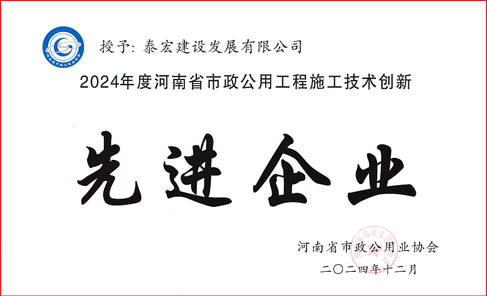 泰宏建设荣获“河南省市政公用工程先进企业”等多项荣誉